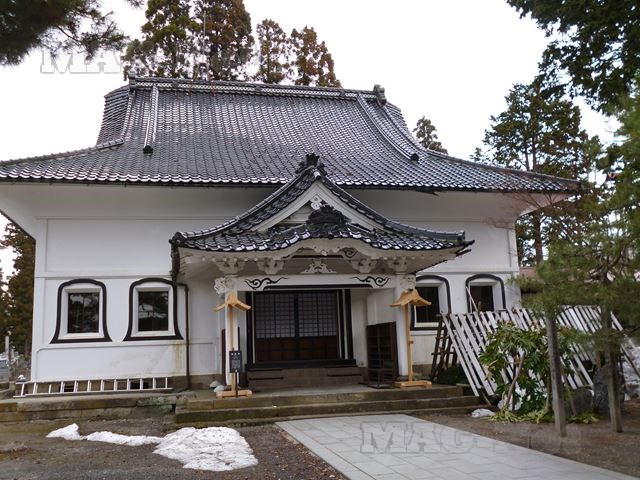 木立に囲まれた本堂が土蔵造りという、喜多方ならではの珍しい寺です。