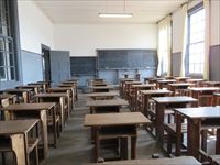 椅子と一体になった机が整然と並び、懐かしい教室の様子が思い出します。