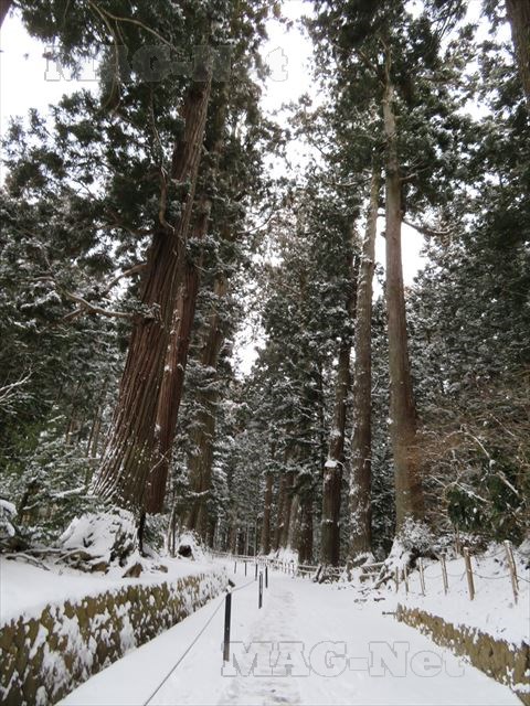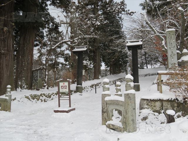 こんな冬場に訪れる人もまばらで、上り坂にはうっすらと昨晩の雪が積もっています。