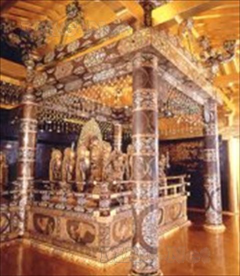 1124年に建てられた「金色堂」は、堂の内外に金箔が施された皆金色の阿弥陀堂です。