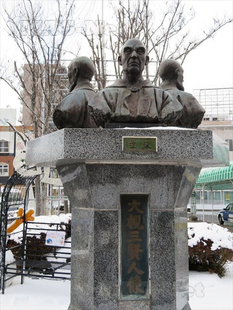 駅前には、大槻3賢人像が建っています。