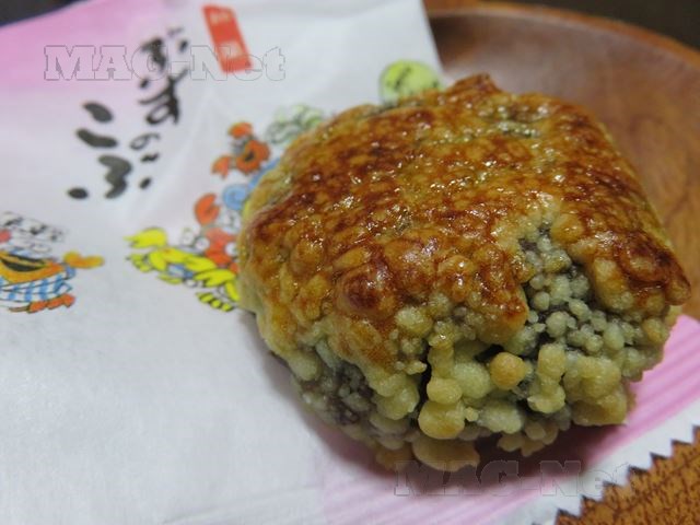 餅の中に黒ゴマで作った蜜が入っいる、一関の名物です。