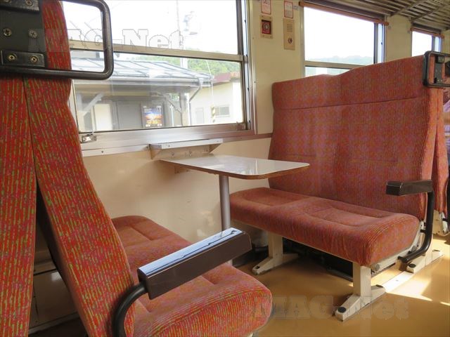 向かい合わせの席の間には、テーブルがついています。