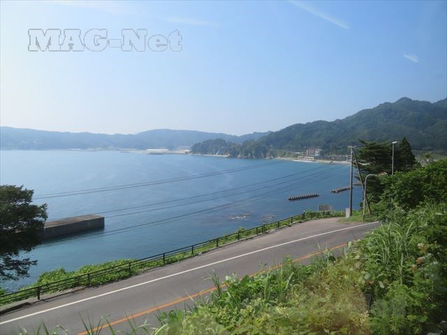 車窓に目を向けると、宮古で見たような高い堤防が海岸線に沿ってどこまでも続いています。