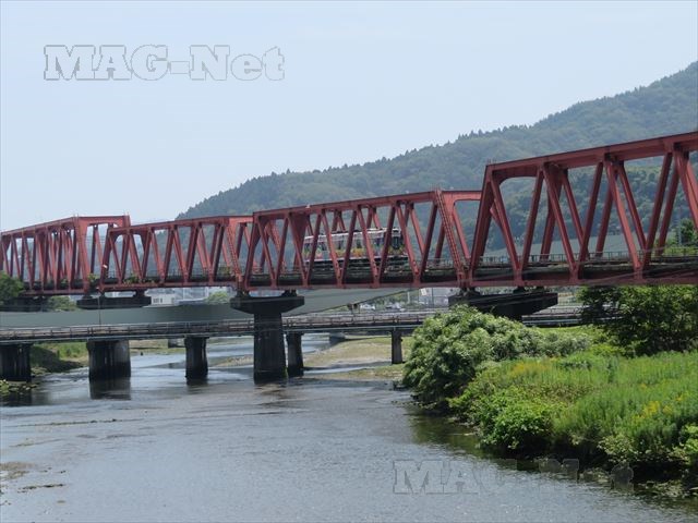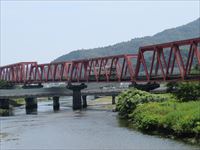 重厚な鉄橋にかわいらしい1両編成の列車が走っている姿は、微笑ましいものです。