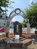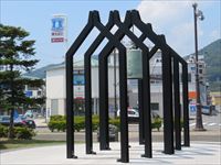 駅前ロータリーには、「鉄のモニュメント」があります。
