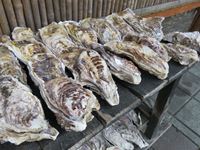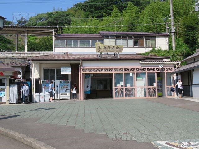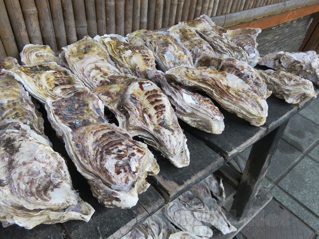 JR仙石線の松島海岸駅には、牡蠣の店が並んでいます。