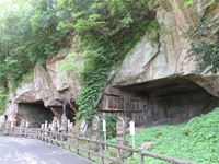 山門を潜ると、岩に掘られた洞窟が続きます。
