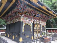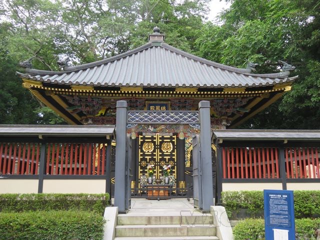 経ケ峯の離れたところには、2代忠宗廟「感仙殿」と、3代綱宗廟「善応殿」もあり、いずれも「瑞鳳殿」と同様に黒を基調とした鮮やかな色付けをした建物です。