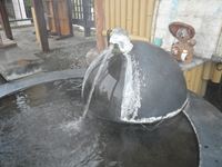 それを洗い場まで運び栓をひねるのですが、冷水、温水の2つの蛇口を1つの栓でまかなうため、交互に忙しく付け替えて使わなければなりません。