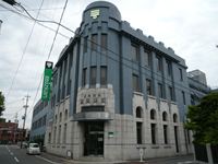 通りを越えると、大正時代を思わせるような石造りのレトロな建物が目に入ります。
