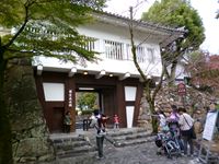 名鉄の線路を跨ぐ参拝用の踏切から、なだらかな階段で上り詰めた先にある山門は、犬山城の門を移築したものです。