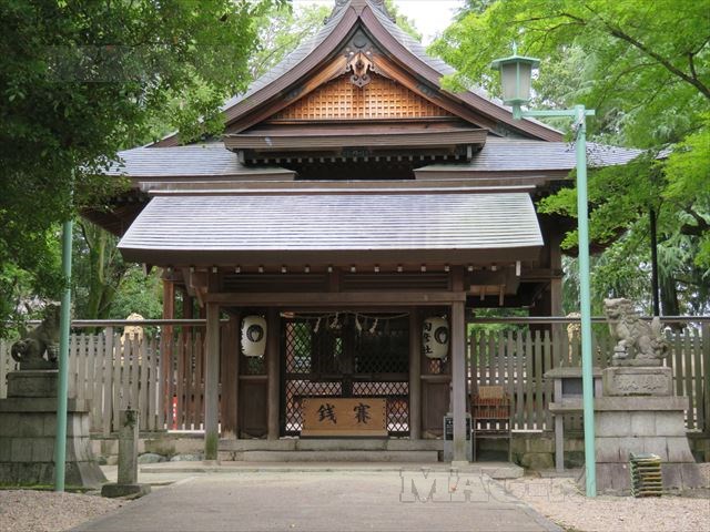 ところが拝殿の前の狛犬は、通常の石でできたものです。