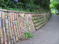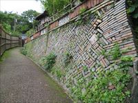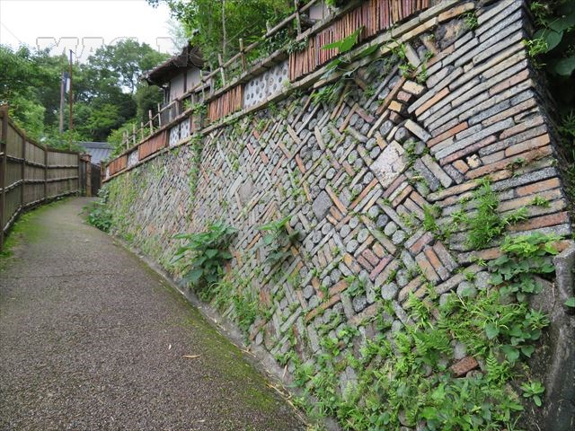道の両脇の垣根は、所々に陶器を積んだもので造られています。