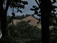そして社殿の背後には、木々の間から遠くに土の地肌が見える場所があります。