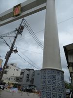 4階部分には丸の中に一の文字、そしてその両側に国と府の文字が囲む丸一国府商店です。