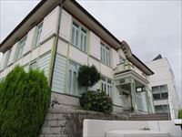 「瀬戸永泉教会礼拝堂」まで帰ってき、その先に洋風の建物がそびえています。