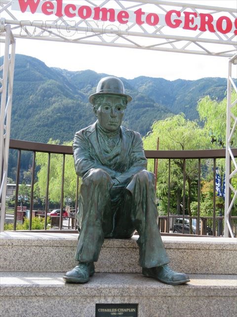 どうやらチャップリン本人が下呂に来たとかいうことではないようですが、この像の序幕式では「下呂温泉シネマテーク」と銘打ってチャップリン映画祭が開かれたくらいで、下呂の本気度が見て取れます。