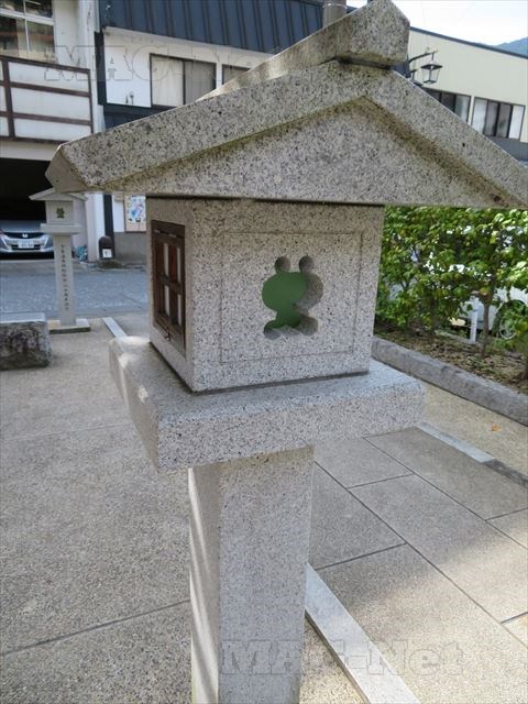 石灯篭の明かり窓も、カエルの形にくり抜かれています。