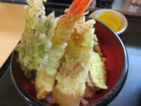 上天丼と並天丼があるのですが、「上にしなくても並みで十分な量があるよ」と商売毛のない店のおばちゃんに勧められ、並盛を注文します。