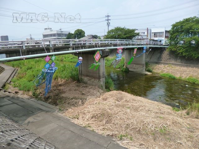 阪内川の橋には、七夕飾りがされていました。