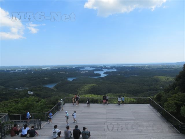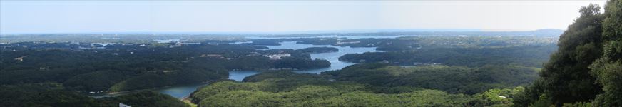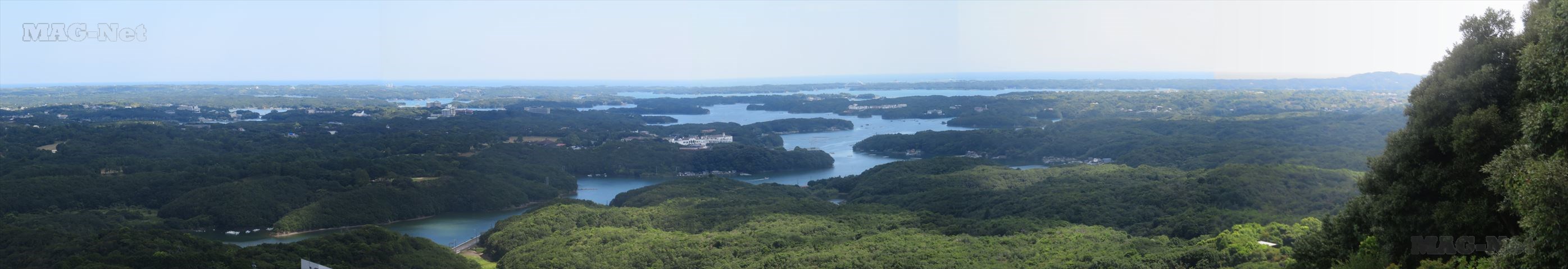 展望のためのテラスがあり、その先には海に浮かぶ志摩の島々の奇怪な形状が広がっています。