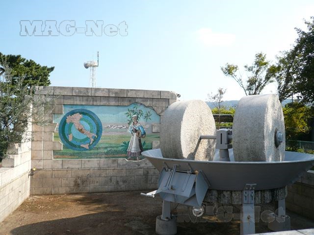 2つのタイヤがつながったような形をしている石臼は、これはオリーブオイルを搾るためのだそうです。