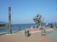 橋を越えた「渚公園」にも、彫刻家重岡健治の数点かの作品が太平洋を望む芝生の中に並んでいます。