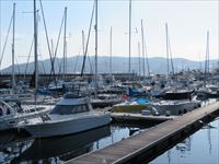 そこにはヨットハーバがあって、多くのクルーザが整列しています。
