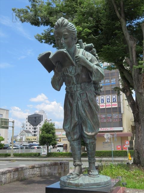 そして駅の前には、二宮金次郎の像が立っています。
