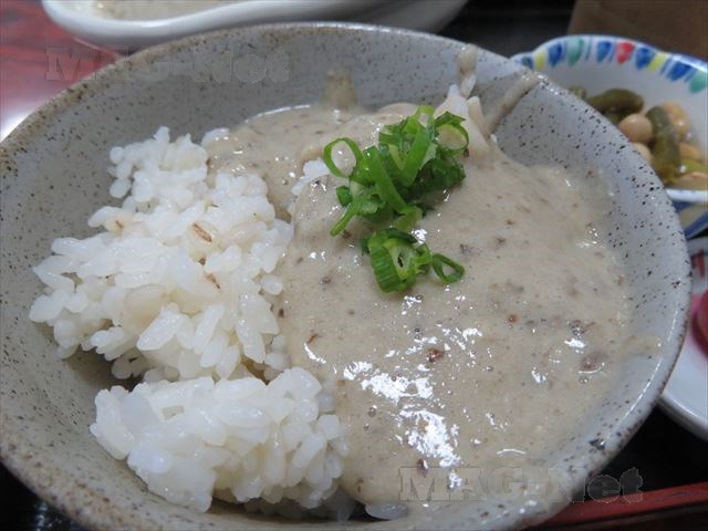 麦ごはんに自然薯を掛けて食べる、いわゆるとろろご飯のことです。