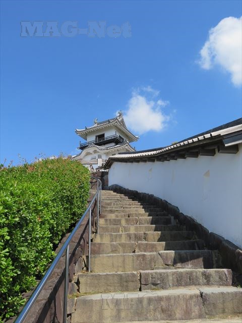 ここから天守閣までは、塀伝いに細い石段を上っていきます。