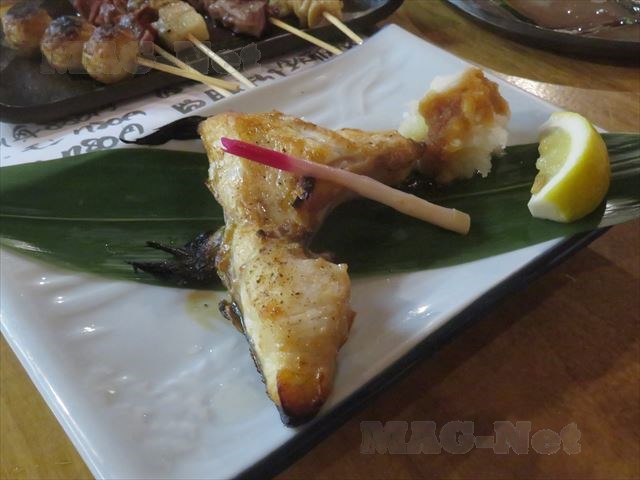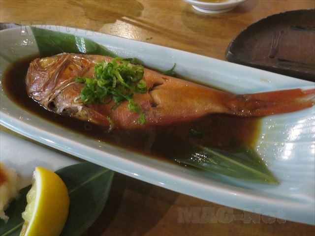 サワラのかまの塩焼き、金目の煮付け、それに刺身など、ビールが進む魚づくしでした。