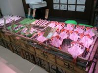 寿司、ひもの、海産物、おにぎり、コロッケや野菜を売る店が、軒を並べています。 そのうちの「港八十三番地」に寄ってみましょう。